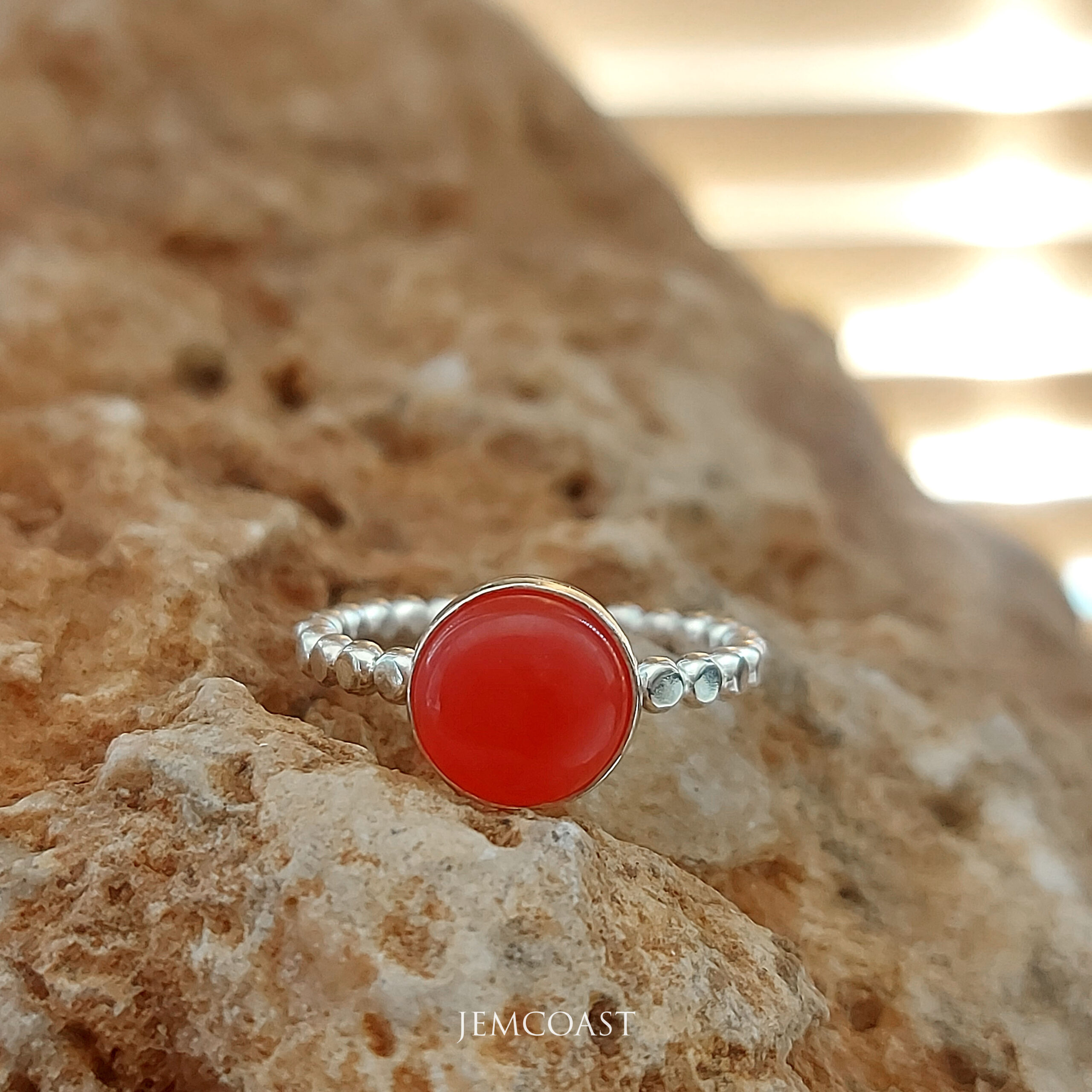 A stunning small red jade ring, made of 925 sterling silver and accented with a captivating red gemstone. This minimalist and delicate ring is a unique and artisanal piece of handmade jade jewelry that is perfect for everyday wear. Add a touch of trendiness and style to any outfit with this customizable silver accessory. Don’t miss out on this elegant and fashionable red jade ring!